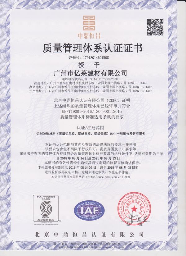 About us廣州市億萊建材有限公司廣州市億萊建材有限公司成立于2007年1月是一家專業(yè)設(shè)計、生產(chǎn)、銷售全系列鋁質(zhì)天花、集成吊頂、藝術(shù)天花板、非標造型金屬天花、室內(nèi)外鋁單板及鋁蜂巢板幕墻、金屬裝飾工程配套材料的專業(yè)企業(yè);位于南中國經(jīng)濟強區(qū)珠江三角洲的廣州市番禺區(qū)(也是一個技術(shù)及資源集中的專業(yè)金屬裝飾材料生產(chǎn)基地);億萊公司屬下品牌:“YILAI億萊”金屬天花&幕墻 及 家居整體吊頂;公司具有年產(chǎn)鋁質(zhì)天花300萬平方米,非標金屬天花及鋁質(zhì)幕墻60萬平方米的生產(chǎn)能力。 |